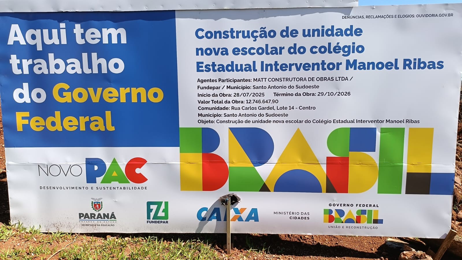 Depois de anos funcionando em espaço compartilhado com uma escola municipal, o Colégio Estadual Manoel Ribas, em Santo Antônio do Sudoeste, começa finalmente a ganhar uma nova sede. As obras já estão em andamento, com o pagamento da primeira parcela do convênio – R$ 1,7 milhão, equivalente a 15% do total – pelo Fundo Nacional de Desenvolvimento da Educação (FNDE). O investimento faz parte do Novo PAC, programa do Governo Federal que, sob a gestão do presidente Lula, tem retomado obras e investimentos paralisados desde 2016, com foco em infraestrutura e políticas sociais.